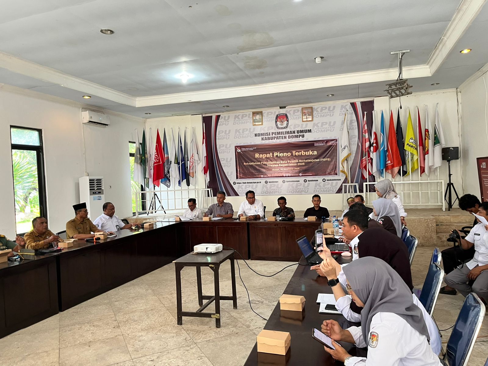 Komisi Pemilihan Umum (KPU) Kabupaten Dompu menggelar Rapat Pleno Terbuka Rekapitulasi Pemutakhiran Data Pemilih Berkelanjutan (PDPB) Triwulan Empat Tahun 2025 pada Senin, 8 Desember 2025, bertempat di Aula KPU Dompu. Kegiatan berlangsung mulai pukul 09.30 Wita dan dihadiri oleh unsur Forkopimda serta stakeholder terkait.